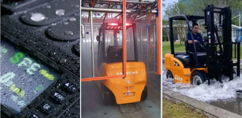 By adopting the driving axle, steering axle, and tire that are used in diesel forklifts, the truck enjoys a high ground clearance and strong frame, which enable it to work well in the tough applications that are normally done by diesel ones. Moreover, the IPX4 water resistance for the whole truck and IP67 protection rate for the main components will enable it suitable for multiple applications.