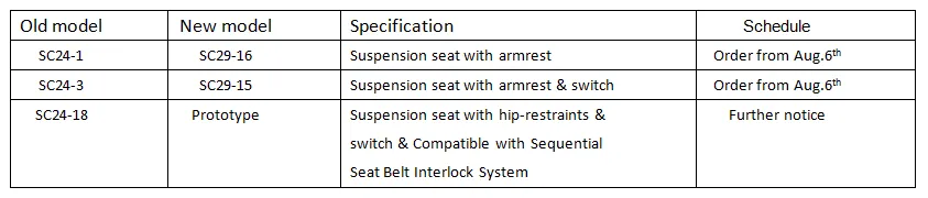 In order to provide the comfortable operation and more reliable performance, we’d like to introduce the new upgraded seat -SC29 Series to you.