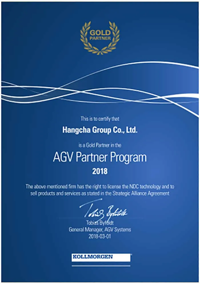 Hangcha Group was promoted from “Silver Partner” to “Gold Partner” by Kollmorgen in just three months. The Group has fully mastered the NDC automated guidance technology, with advanced and mature technical solutions, rapid and efficient field performance. It demonstrates that intelligent logistics solutions of Hangcha Group are highly recognized and appraised in both terms of technology and market, and signifies significant lifting of Hangcha’s position in the field of AGV.