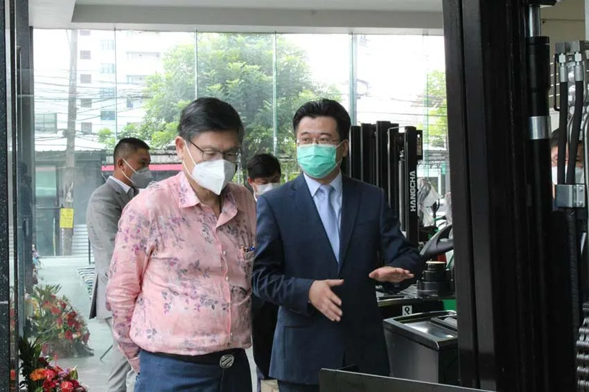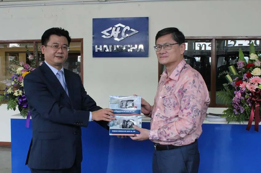 Yesterday, the Thai Minister of Higher Education, Scientific Research and Innovation (???.???????????????????????????????????????), Anek Laothamatas (??.??????????????????) and his companies had a visit to Hangcha Southeast Asia. David King, the general manager and Welson Mei, the general manager assistant of Hangcha Southeast Asia Co., Ltd., together with all staff, warmly welcome their arrival!