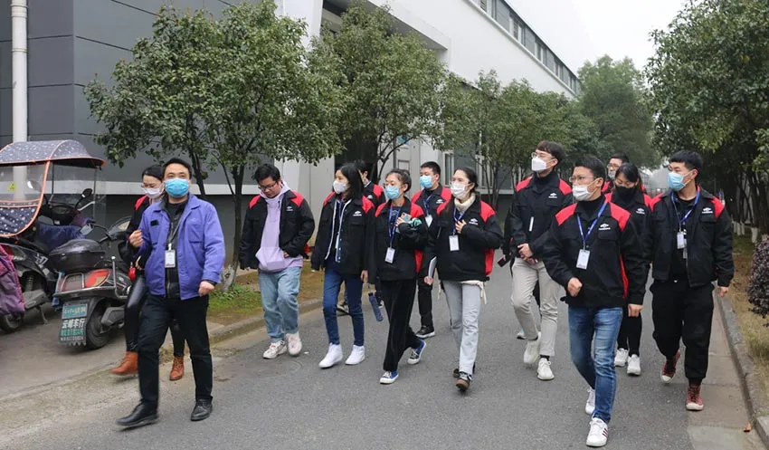 The next morning, under the guidance of Wang Jianqi, director of manufacturing department, the new employees visited five plants that produce masts, assemble warehouse equipment, electric forklifts, special trucks and internal combustion forklifts. They listened carefully to the introduction of each branch and put forward questions from time to time, and then recorded. In the afternoon, they also visited Hengfan intelligent workshops, Hangcha exhibition hall and export warehouse. After a day of tour and learning, they not only had a more comprehensive understanding on Hangcha, but also impressed by the advanced air conveying lines, intelligent workshop, AGVs (Automatic Guided Vehicle), intelligent welding robots and the great annual production capacity reaching to 200,000 units, which also help increase their confidence in the prospect of their personal career and the bright future of Hangcha.
