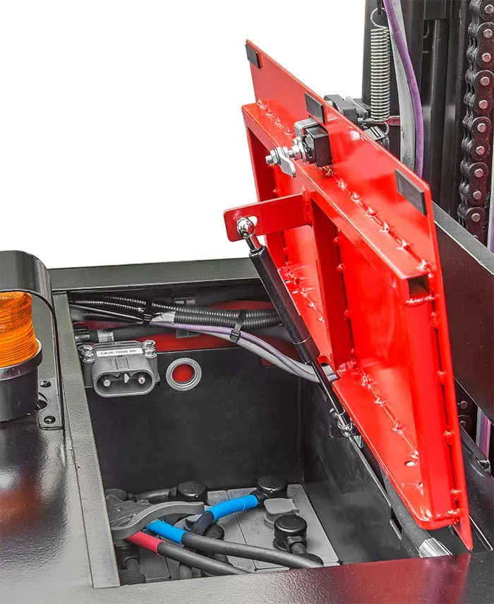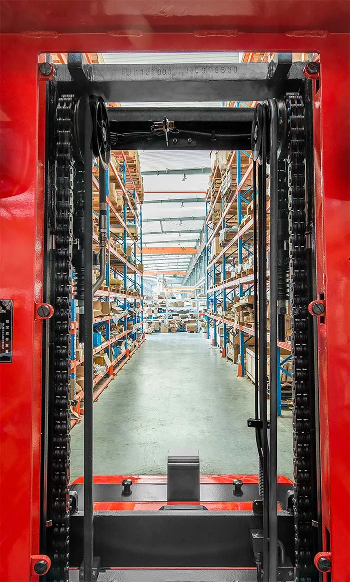 Wide mast vision improves safety around the truck.