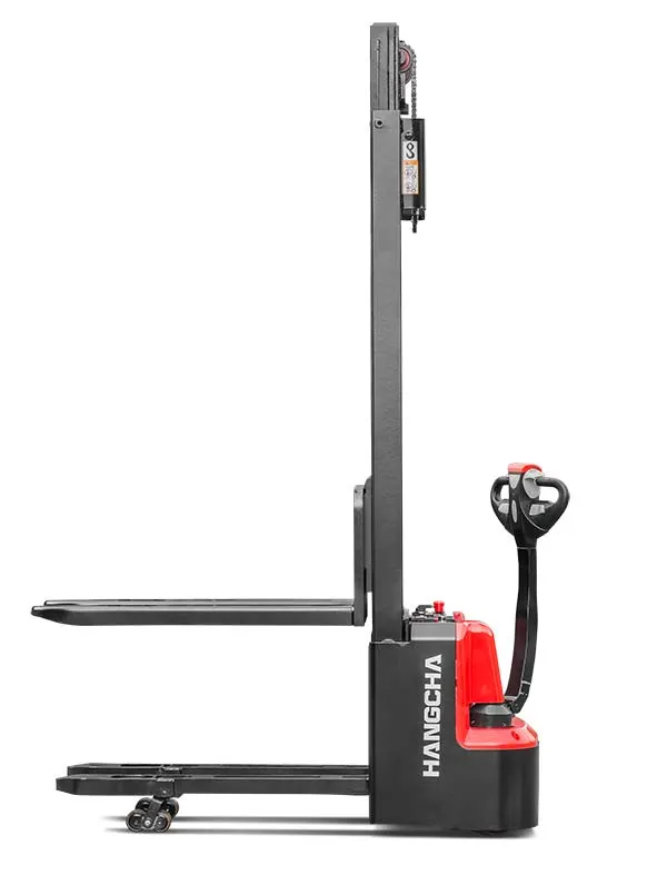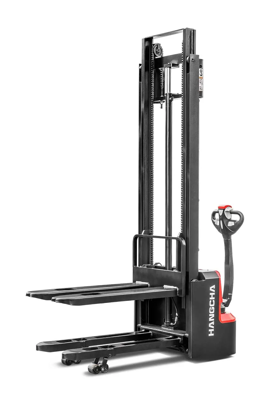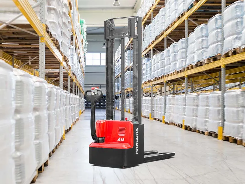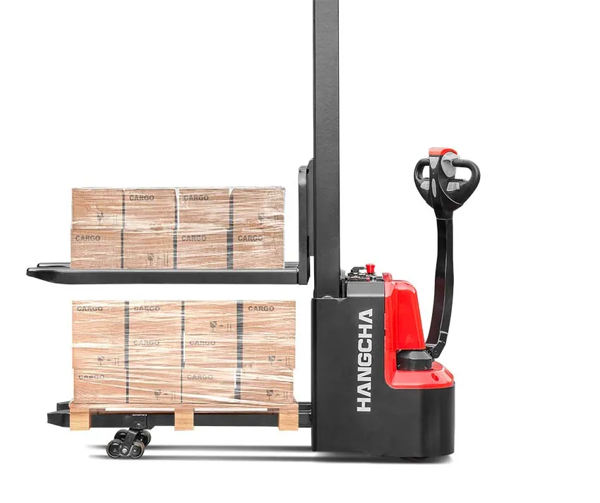 Feature: HANGCHA A series mini range pallet stacker with initial lift has a compact body, as a double-deck stacker, it can pick up two pallets stacked on top of each other at the same time, cutting operating times in half. It combines the features of a pedestrian pallet truck and stacker in one truck and is also small and compact.