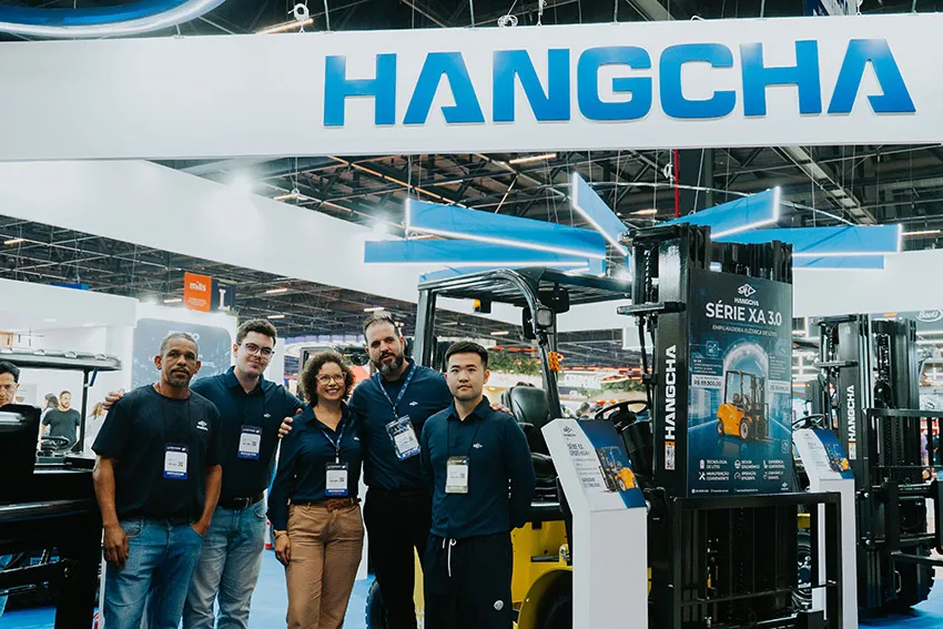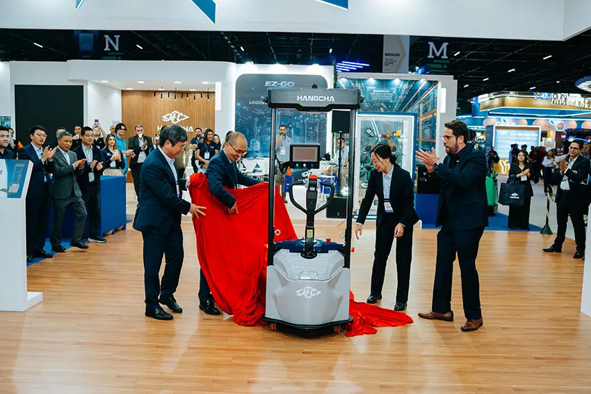 Hangcha Group, a global leader in forklift manufacturing, is showcasing its full range of innovative products at booth M013. On the opening day, Yuson Li (Deputy General Manager of Hangcha Group), Pat Pan (Deputy General Manager of Hangcha Import & Export), Sarah Luo (CEO of Hangcha Brasil), and Lucas Porto (General Manager of Santos & Porto) gathered for the unveiling ceremony of the new 2.0-ton EZGO Mini Pallet AMR. Following the ceremony, Luo officially launched the smart AMR for the Latin American market.
