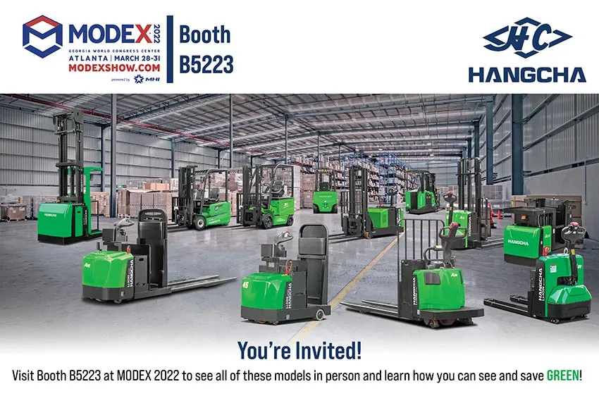 As we start the show, we wanted to send out a reminder that you are invited to join HC Forklift America Corporation at MODEX 2022. We will be showcasing 12 different models from our industry-leading, full line of lithium-ion material handling equipment. All green and lithium battery-powered forklifts can deliver the performance as IC ones while benefiting from reduced noise, free maintenance, and zero emission.