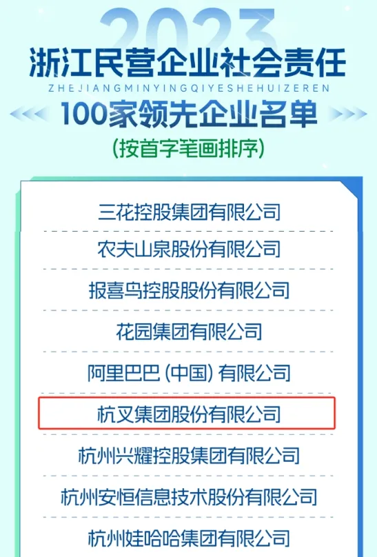 杭叉集团再次上榜浙江民营企业社会责任100家领先企业