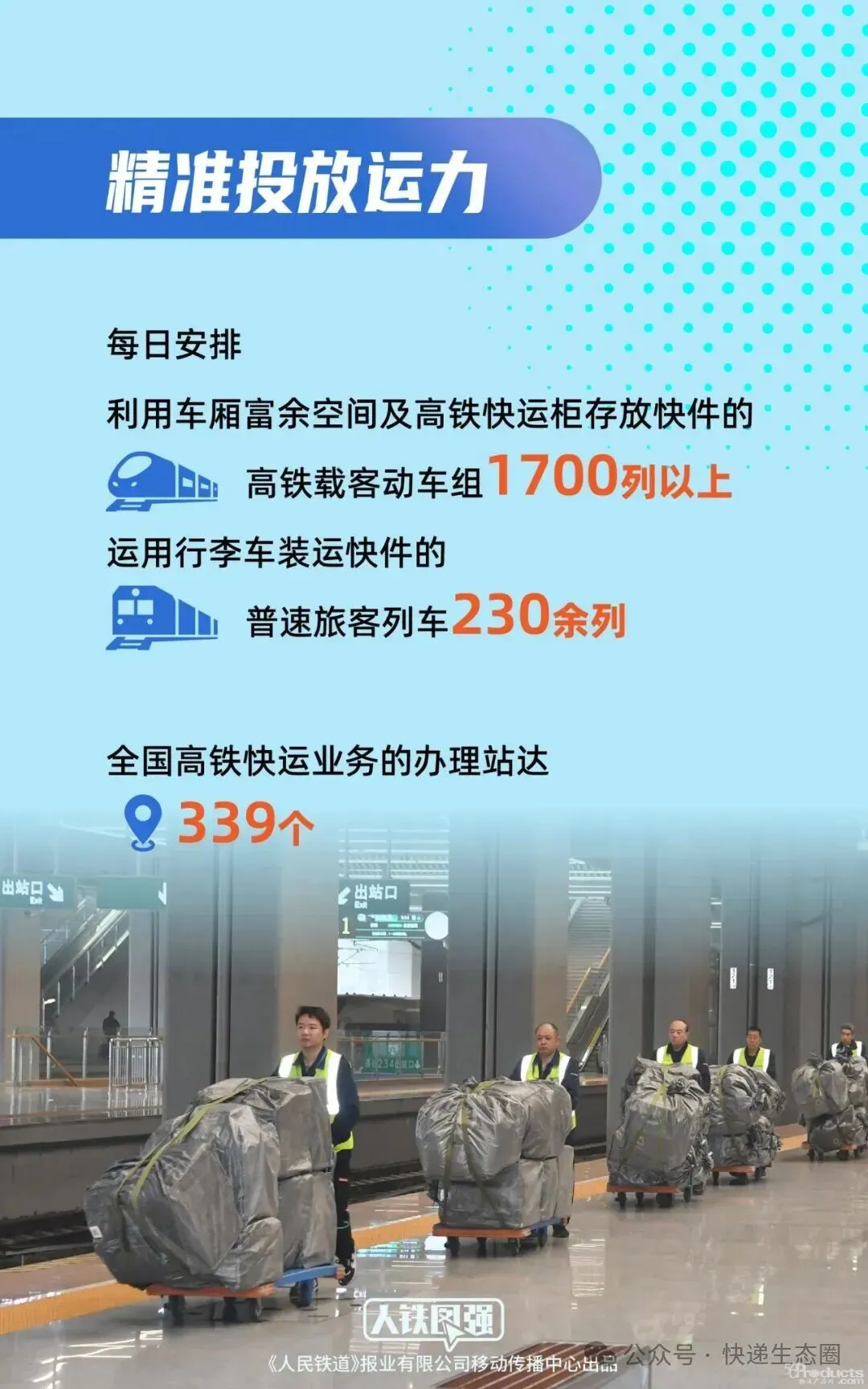 一是精准投放运力。每日安排利用车厢富余空间及高铁快运柜存放快件的高铁载客动车组1700列以上,设有快件预留车厢的动车组约50列,清晨开行、全列无乘客、可装运快件的高铁确认列车37列,昆明至成都间整列高铁快运列车2列,开展高铁快运服务,高铁快运能力预计同比增长10%。每日安排运用行李车装运快件的普速旅客列车230余列。在北京、上海、杭州、广州等城市间每日安排开行*高时速160公里的特快班列8列,在沈阳至广州、广州至乌鲁木齐等城市间开行多条快速班列和普速班列,开展铁路快运服务。优化站点布局和资源配置,在镇江站、日照站、长白山西站等增办高铁快运业务,全国高铁快运业务的办理站达339个。