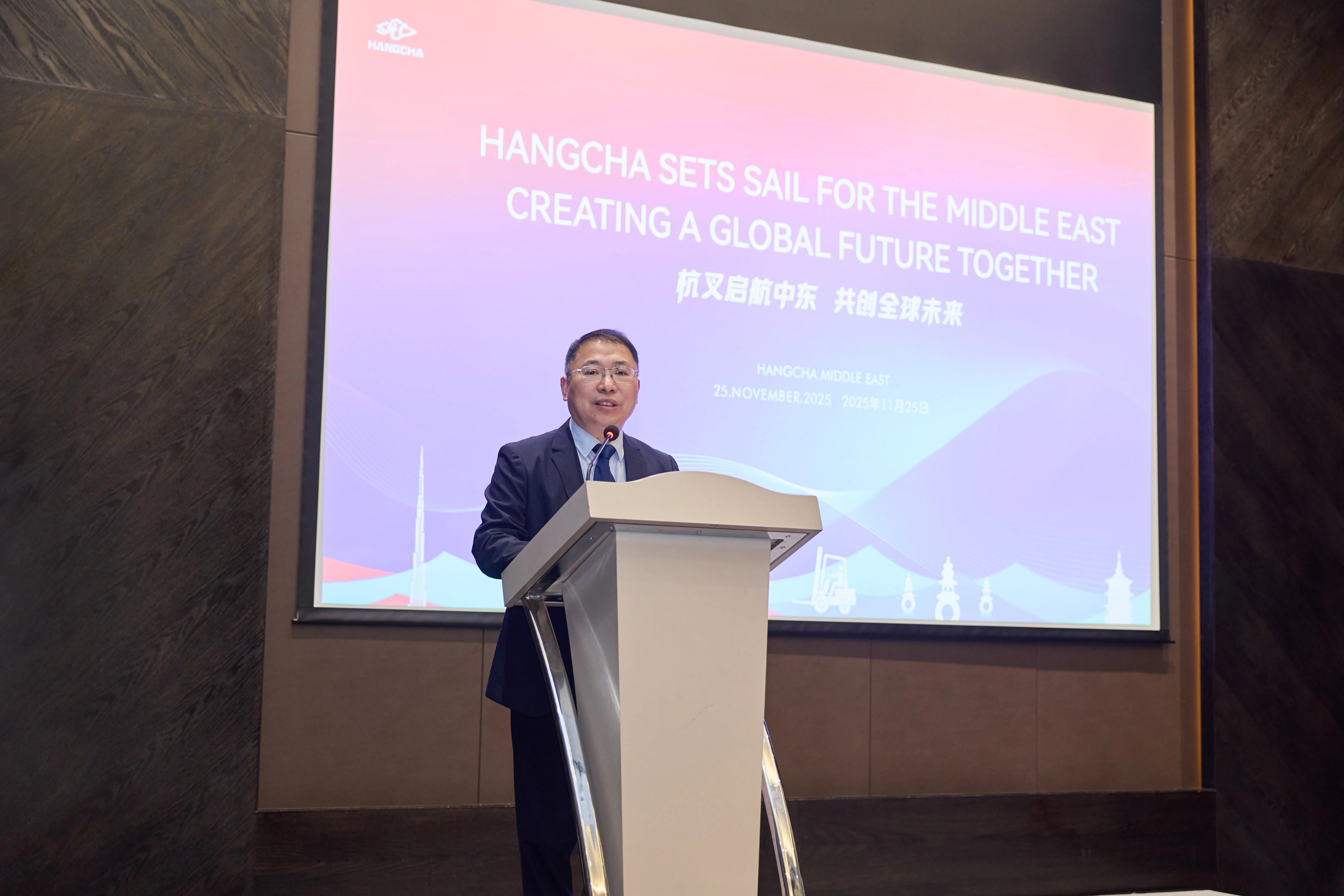 杭叉国际总经理张君军在致辞中表示,“杭叉中东公司将依托迪拜的区位优势与国际影响力,进一步辐射中东、非洲及南亚市场,为客户提供更高效、更便捷的本地化服务。他强调,杭叉将以更加务实的态度和饱满的热情,与当地合作伙伴携手共进,共创共赢。”